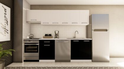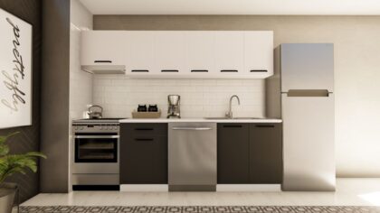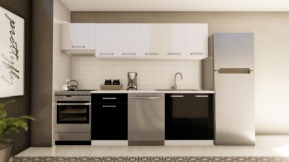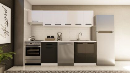 260 cm SEMA HAZIR MUTFAK DOLABI ASPİRATÖR MODÜLLÜ PARLAK BEYAZ ve SİYAH