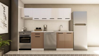 260 cm SEZER HAZIR MUTFAK DOLABI ASPİRATÖR MODÜLLÜ PARLAK BEYAZ ve CAPPUCCINO