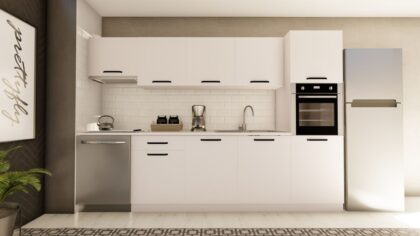 300 cm BEGONYA HAZIR MUTFAK DOLABI ASPİRATÖR ve ANKASTRE KİLER MODÜLLÜ BEYAZ