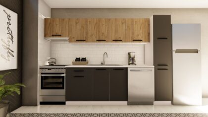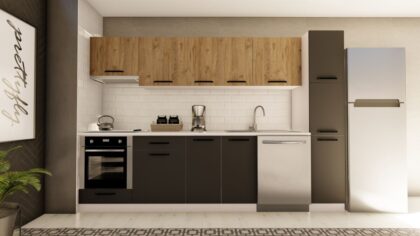 300 cm BAHAR HAZIR MUTFAK DOLABI ASPİRATÖR, ANKASTRE ve KİLER MODÜLLÜ ATLANTİK ÇAM ve ANTRASİT