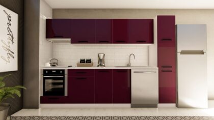 300 cm AZRA HAZIR MUTFAK DOLABI ASPİRATÖR, ANKASTRE ve KİLER MODÜLLÜ PARLAK MÜRDÜM