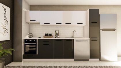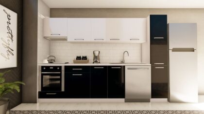 300 cm AYBÜKE HAZIR MUTFAK DOLABI ASPİRATÖR, ANKASTRE ve KİLER MODÜLLÜ PARLAK BEYAZ ve SİYAH