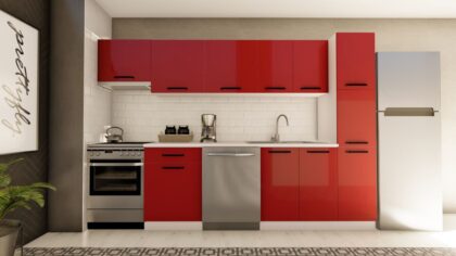 300 cm BİRGÜL HAZIR MUTFAK DOLABI ASPİRATÖR ve KİLER MODÜLLÜ PARLAK KIRMIZI