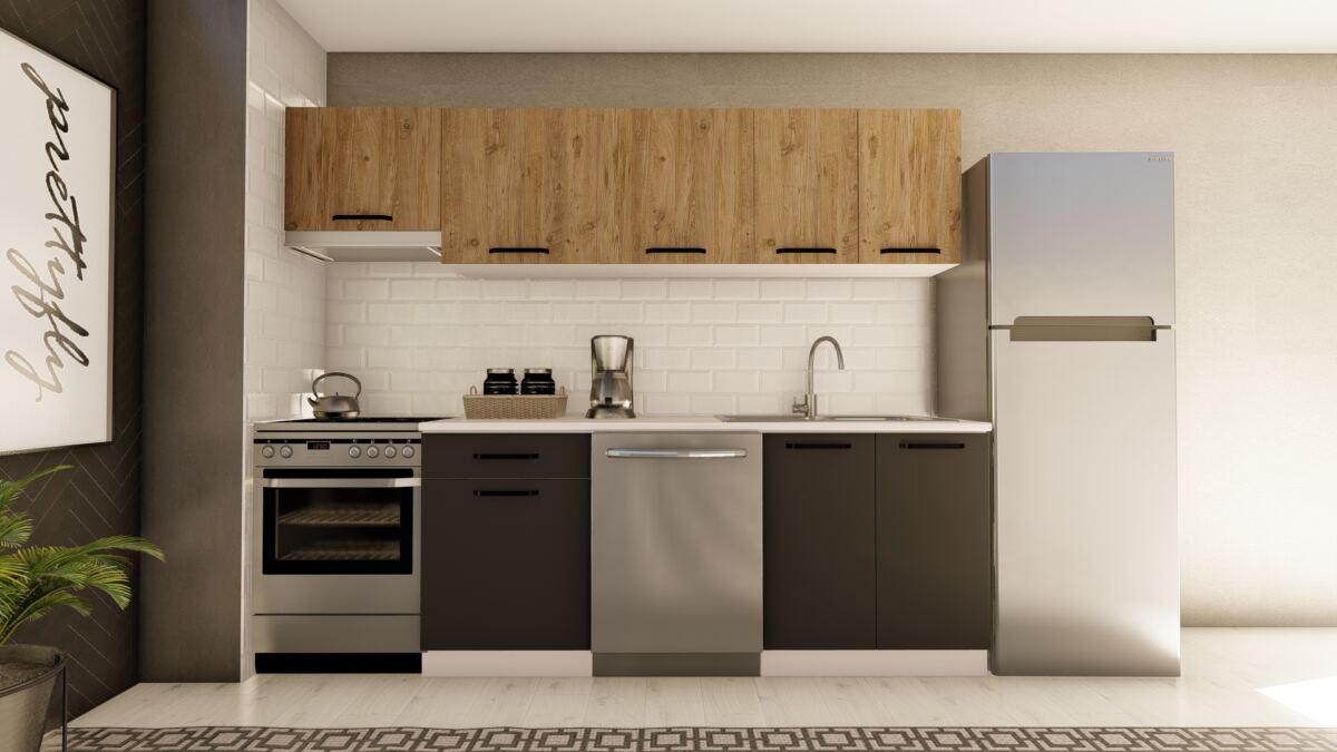 VİSAS CONCEPT _ 260 cm IRMAK HAZIR MUTFAK DOLABI ASPİRATÖR MODÜLLÜ ATLANTİK ÇAM ve ANTRASİT