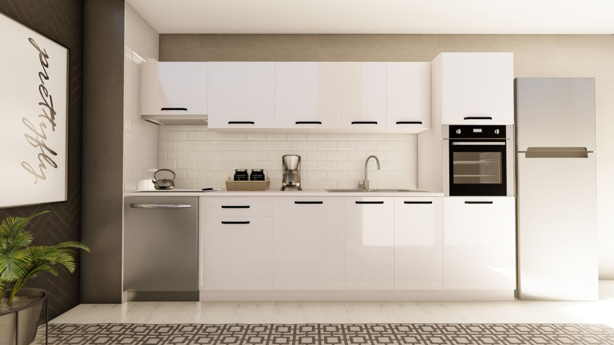 VİSAS CONCEPT _ 320 cm EMİNE HAZIR MUTFAK DOLABI ASPİRATÖR ve ANKASTRE KİLER MODÜLLÜ PARLAK BEYAZ